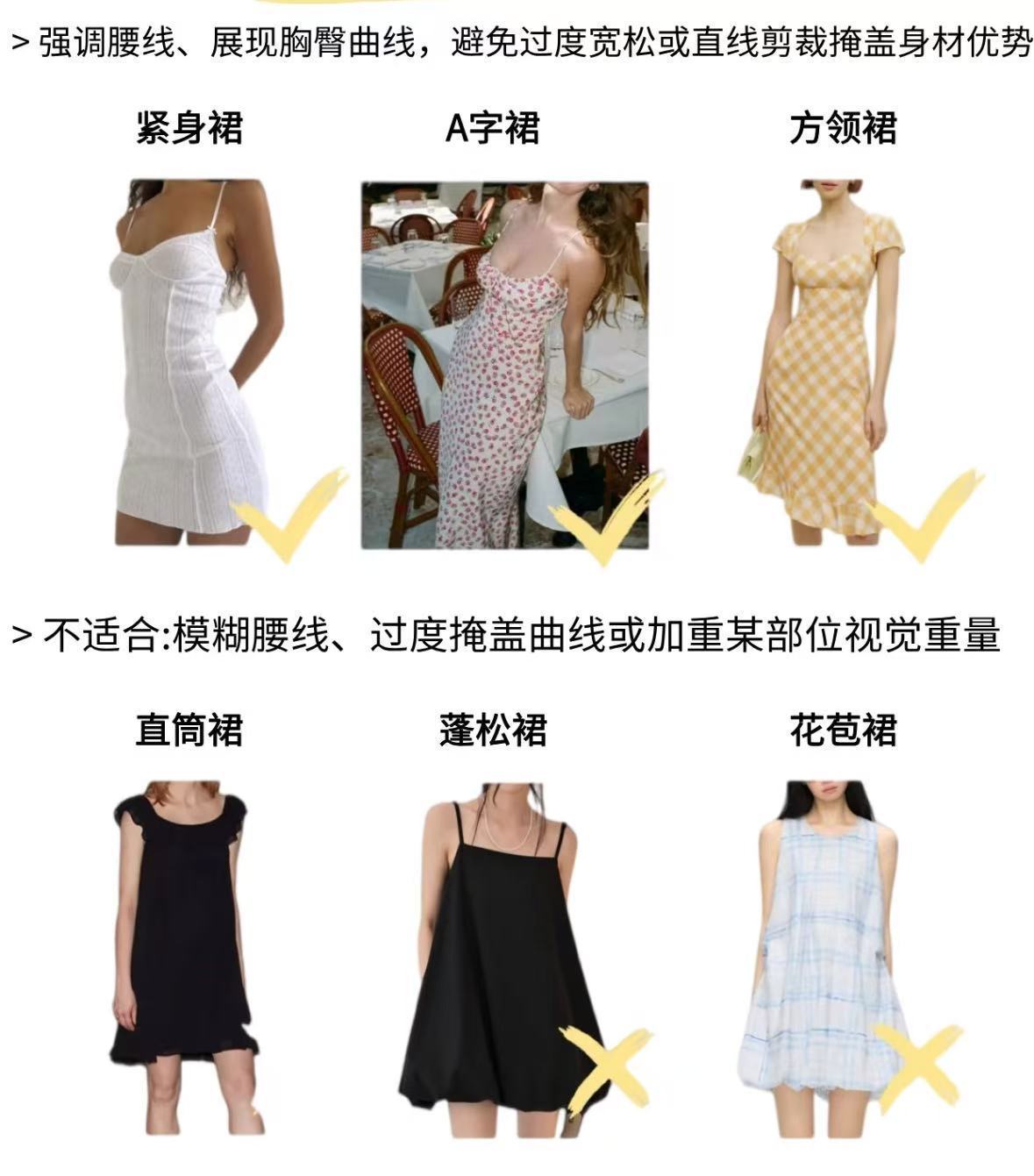 核心任务: 凸显优势,强调腰线,展现曲线美。上装: 修身但有弹性的针织衫、V领衬衫。避免过于宽大完全隐藏曲线的款式。下装: 铅笔裙、包臀裙、高腰直筒/微喇裤。所有下装都应突出高腰线。X型收腰连衣裙是最佳单品。